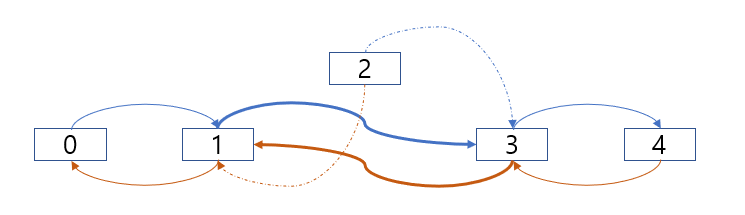 0 ~ n-1 의 Node의 prev/next를 이전/다음 Node와 이어줌