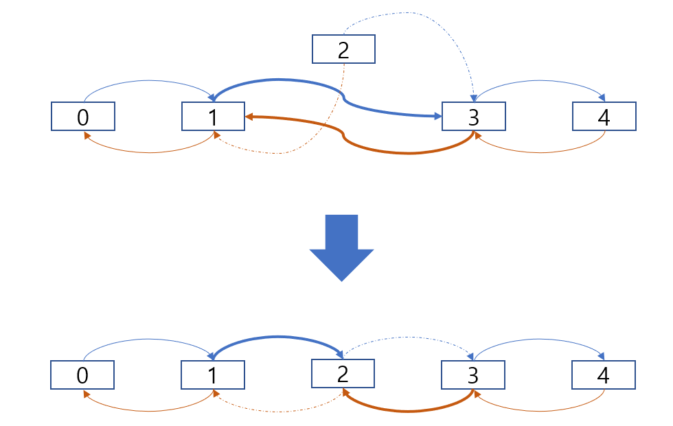 Node의 연결 관계만 변경하면 삭제된 Node가 있더라도 이동 명령을 수행하기 편함