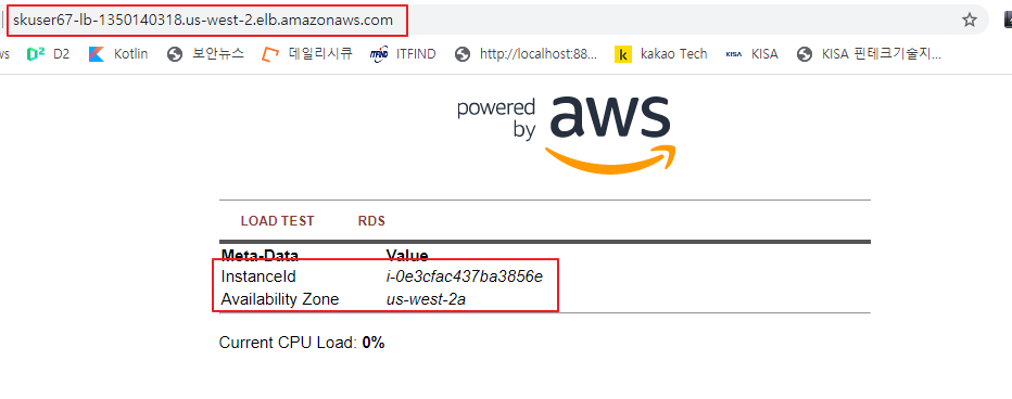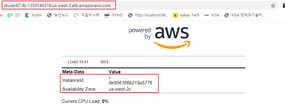 F5를 누를때 마다 InstanceId가 변경됨(로드벨런스가 동작중임을 확인)