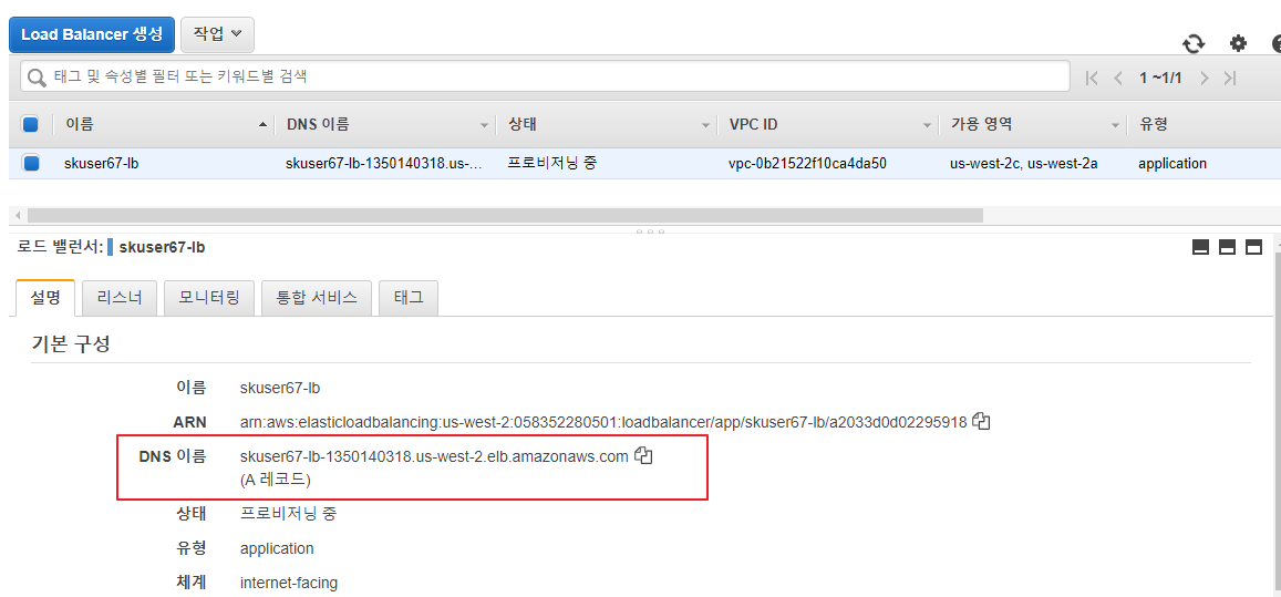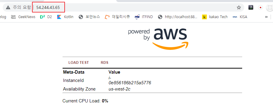 * 로드벨런스에 연결된 2개의 인스턴스중 한개를 중지한다면 실행중인 인스턴스로만 연결됨
