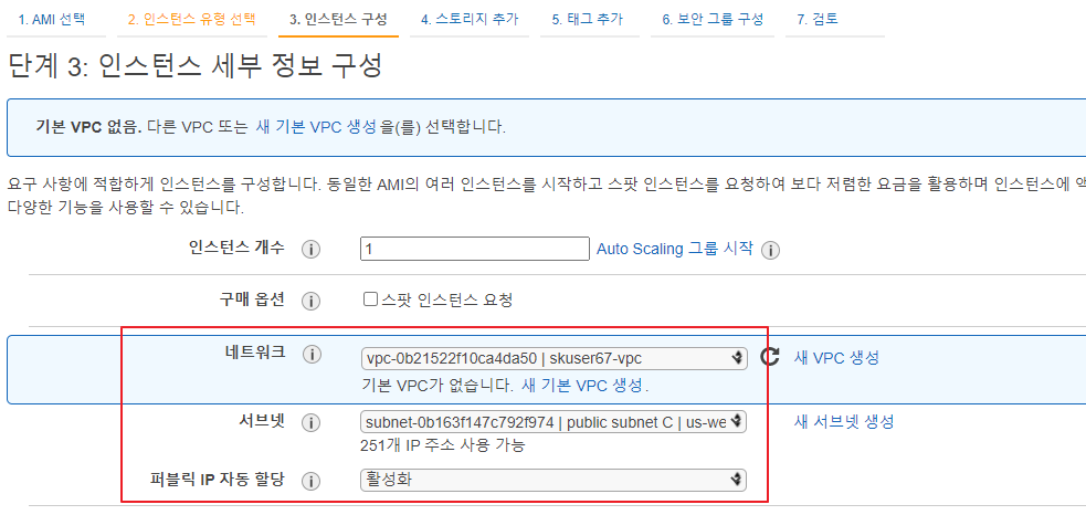 *사용자 데이터는 입력하지 않아도 됨(AMI를 이용하여 인스턴스를 생성하기 때문에)