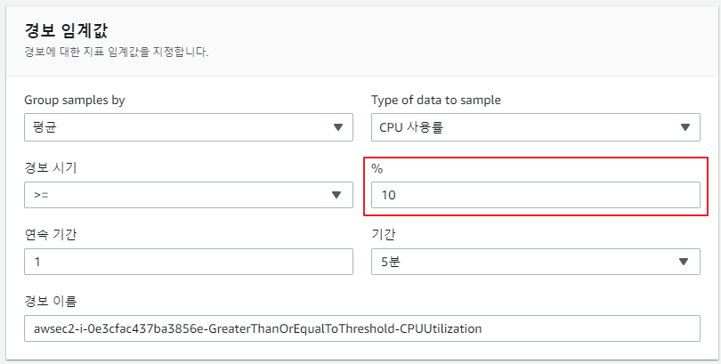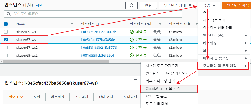EC2 서비스에서 본인이 생성한 웹 서버 인스턴스를 선택한 후 경보를 생성