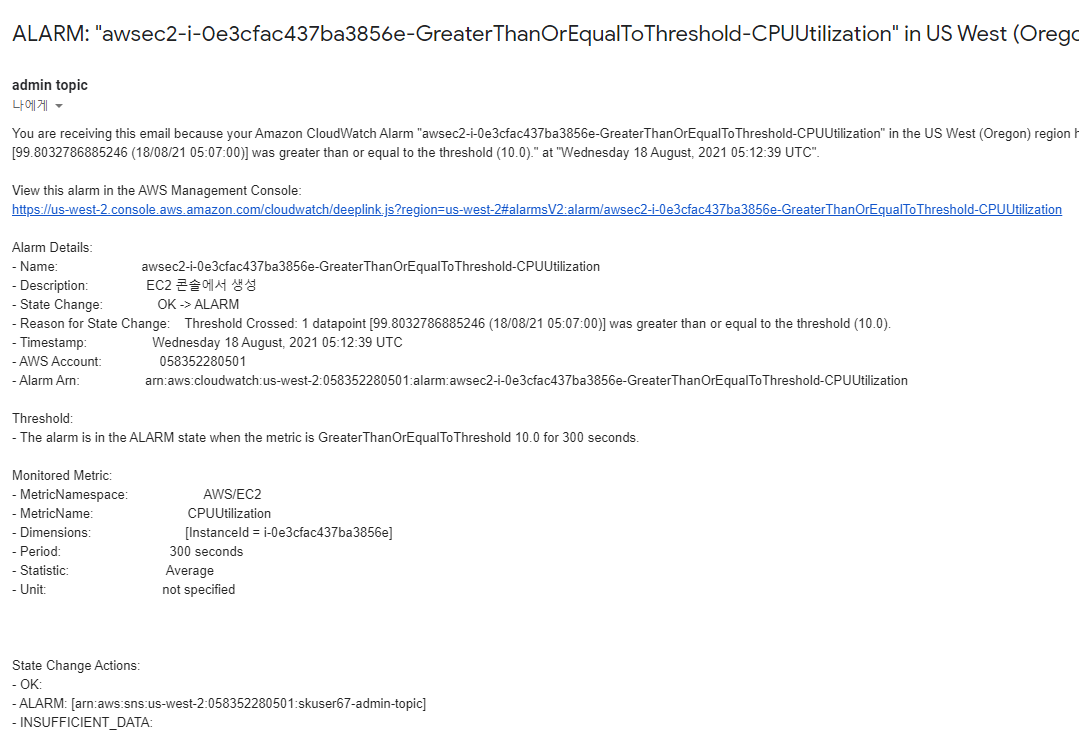 EC2 인스턴스의 상태 변화가 생겼을 때 지정된 계정(관리자)으로 알림을 전달