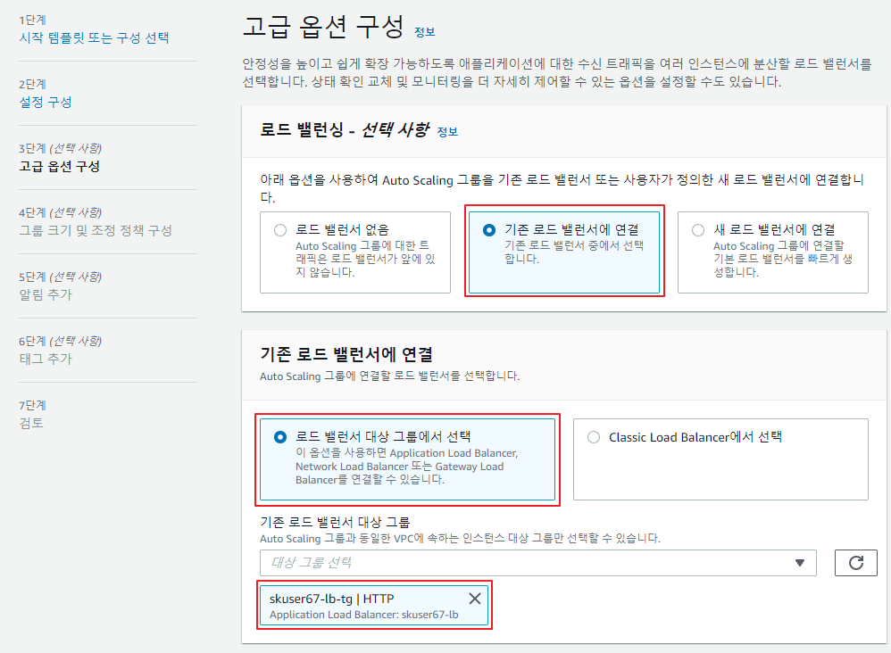 개별적으로 생성한 인스턴스는 오토스케일링을 통해서 제어되지 않으므로, 로드밸런스 대상 그룹에서 제외시키는 것