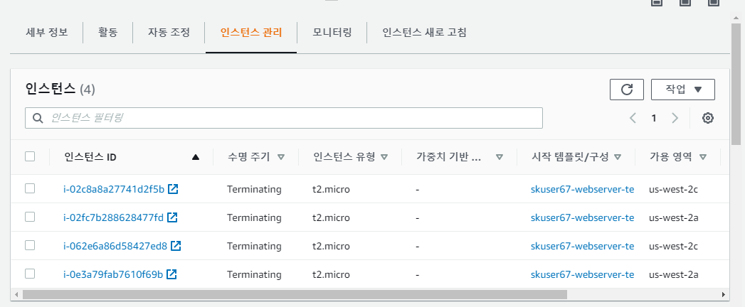 ASG를 통해 생성된 인스턴스가 모두 종료됨