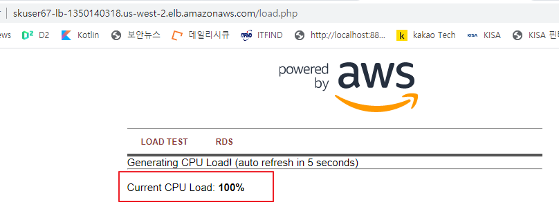 3) LOAD TEST 링크를 클릭 → 해당 서버에 부하를 유발하는 코드를 동작