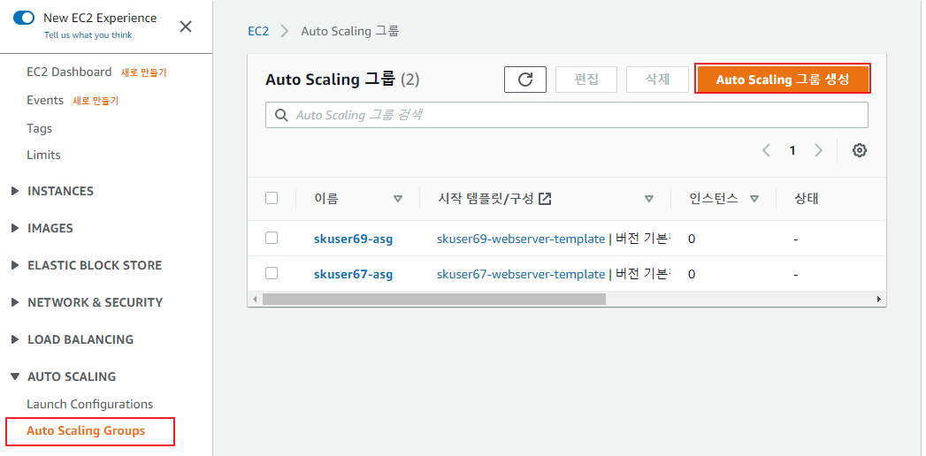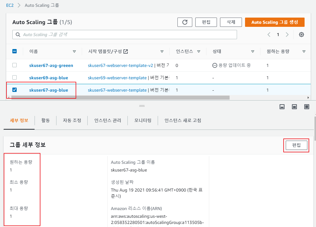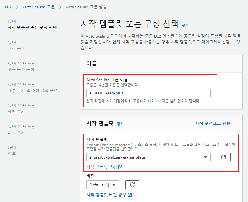 ASG(Auto Scaling Group)생성 - 블루버전(현재 서비스)