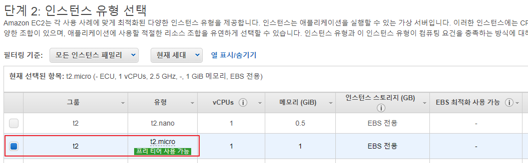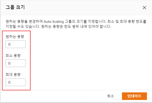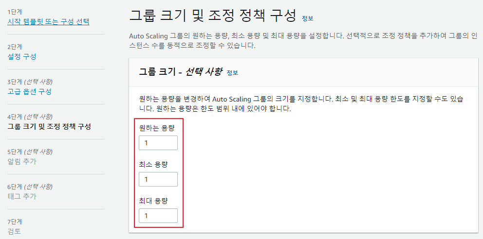 단순 배포환경 실습이기 때문에 그룹 크기는 최소로 구성