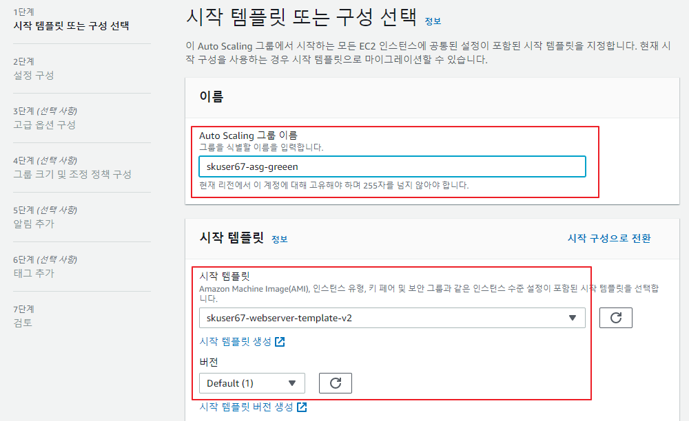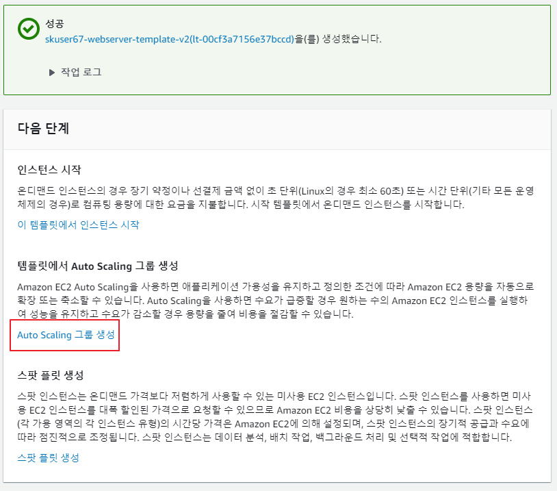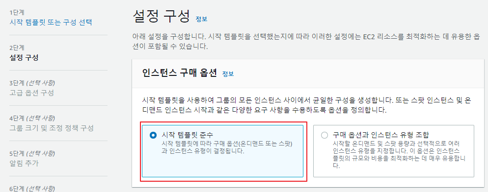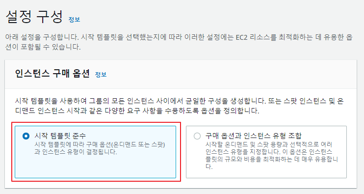 시작 템플릿 설정에 이어서 ASG설정으로 넘어감