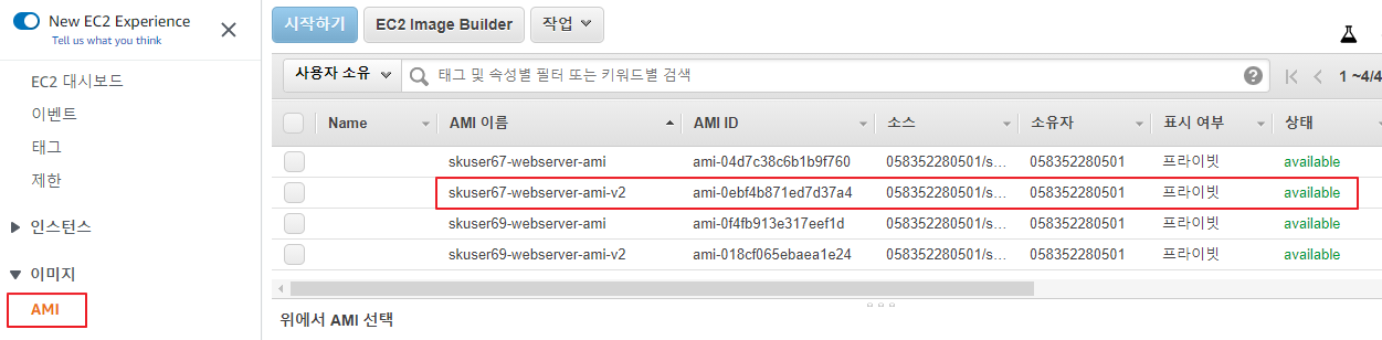 AWS 기반 웹서비스 구성 실습(2)에서 생성한 AMI를 이용하여 인스턴스 생성