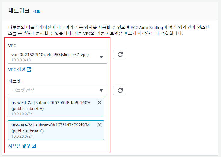 AWS 기반 웹서비스 구성 실습(2, 3)에서 만든 시작 템플릿, VPC, 서브넷, 로드 벨런스 사용